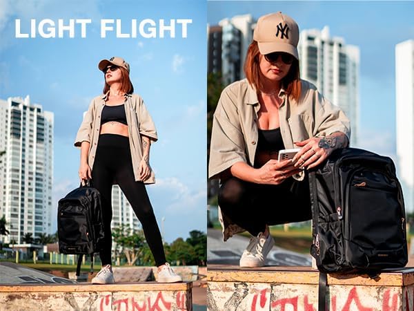 Stay organized and efficient with the LIGHT FLIGHT Travel Backpack’s spacious interior, complete with multiple compartments and pockets to store all your essentials. The water-resistant material keeps your belongings dry and protected from the elements, making it the perfect companion for all weather conditions.